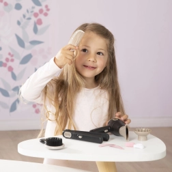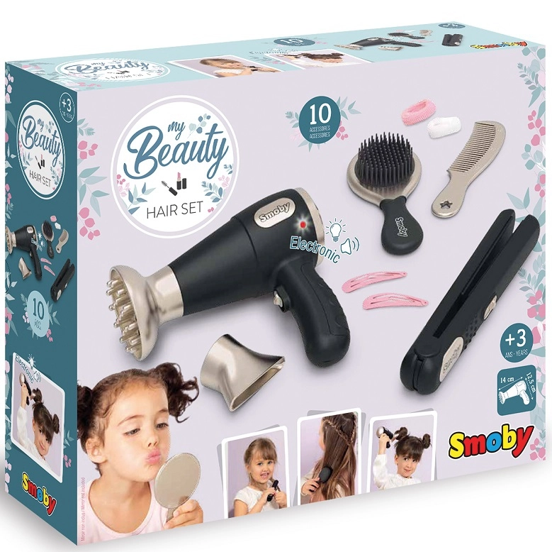 Детският фризьорски комплект Beauty от марката SMOBY е перфектен избор за малки стилисти, които обичат прическите и креативната игра. Благодарение на реалистичните детайли и функционалния играчешки сешоар със светлина и звук, децата ще изживеят усещането за истински салон. Богатите аксесоари позволяват създаване на оригинални визии за кукли и членове на семейството.