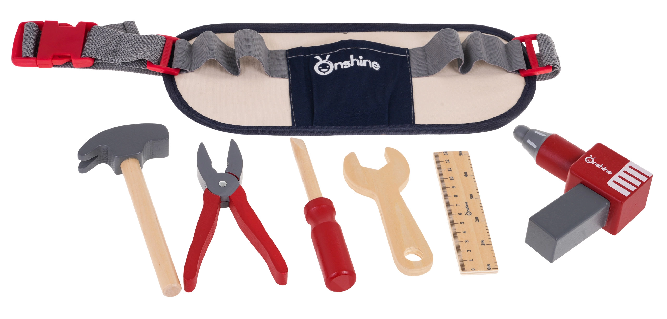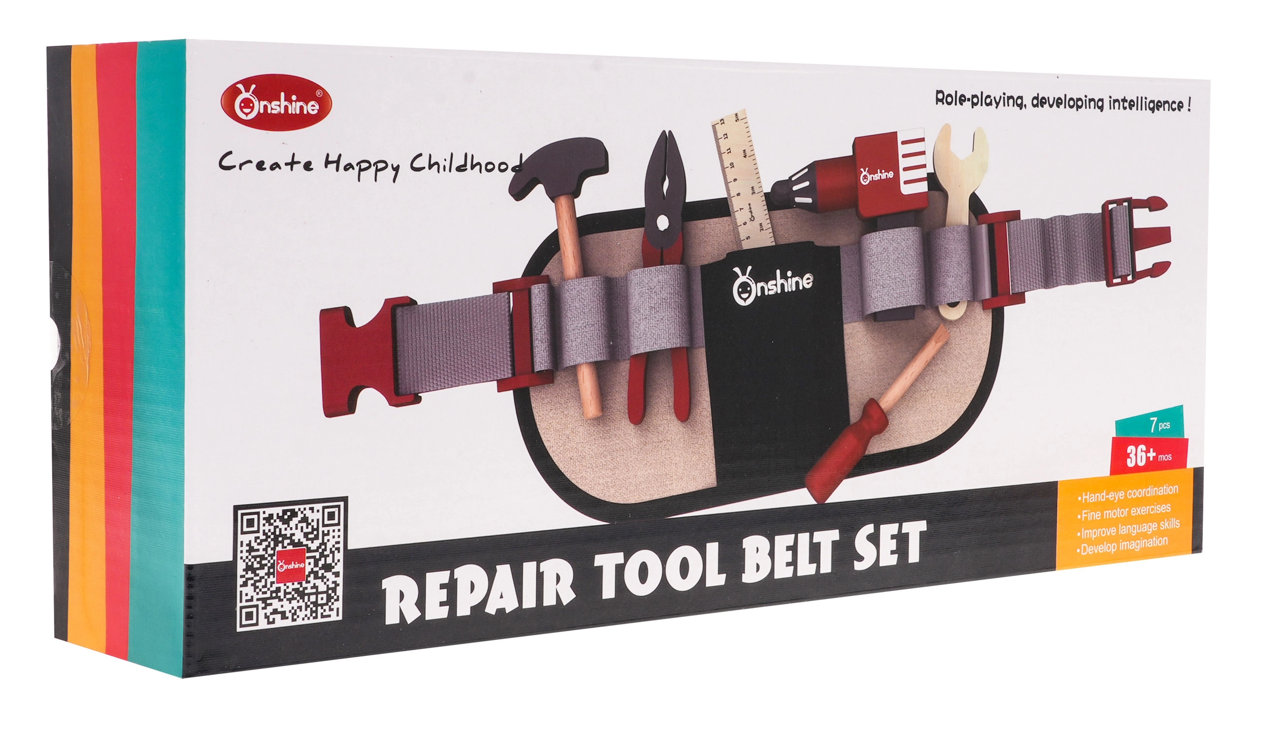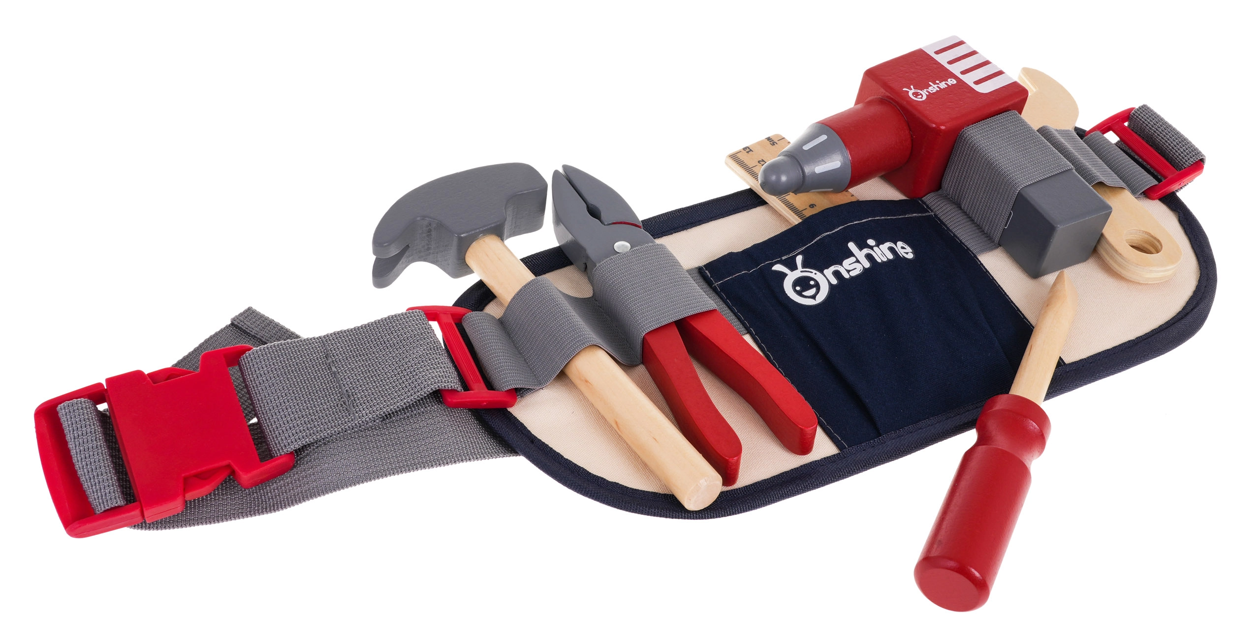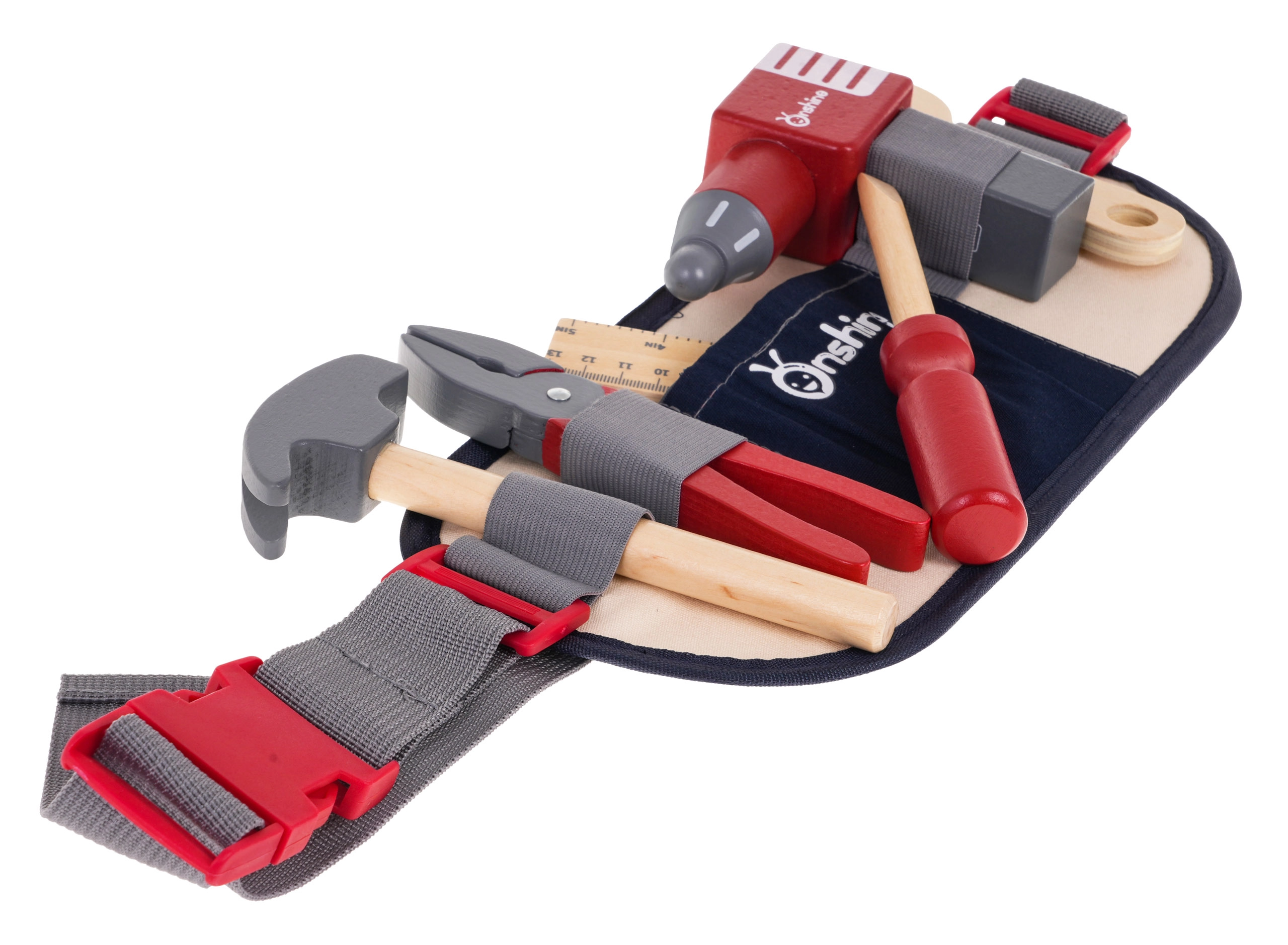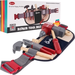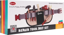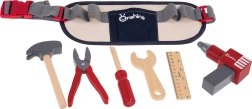 Коланът за инструменти е регулируем и се закопчава с катарама, съдържа централно джобче и пет отделения за съхранение на всички инструменти от комплекта. Така децата могат с удоволствие да играят на ремонт и да развиват своето въображение.