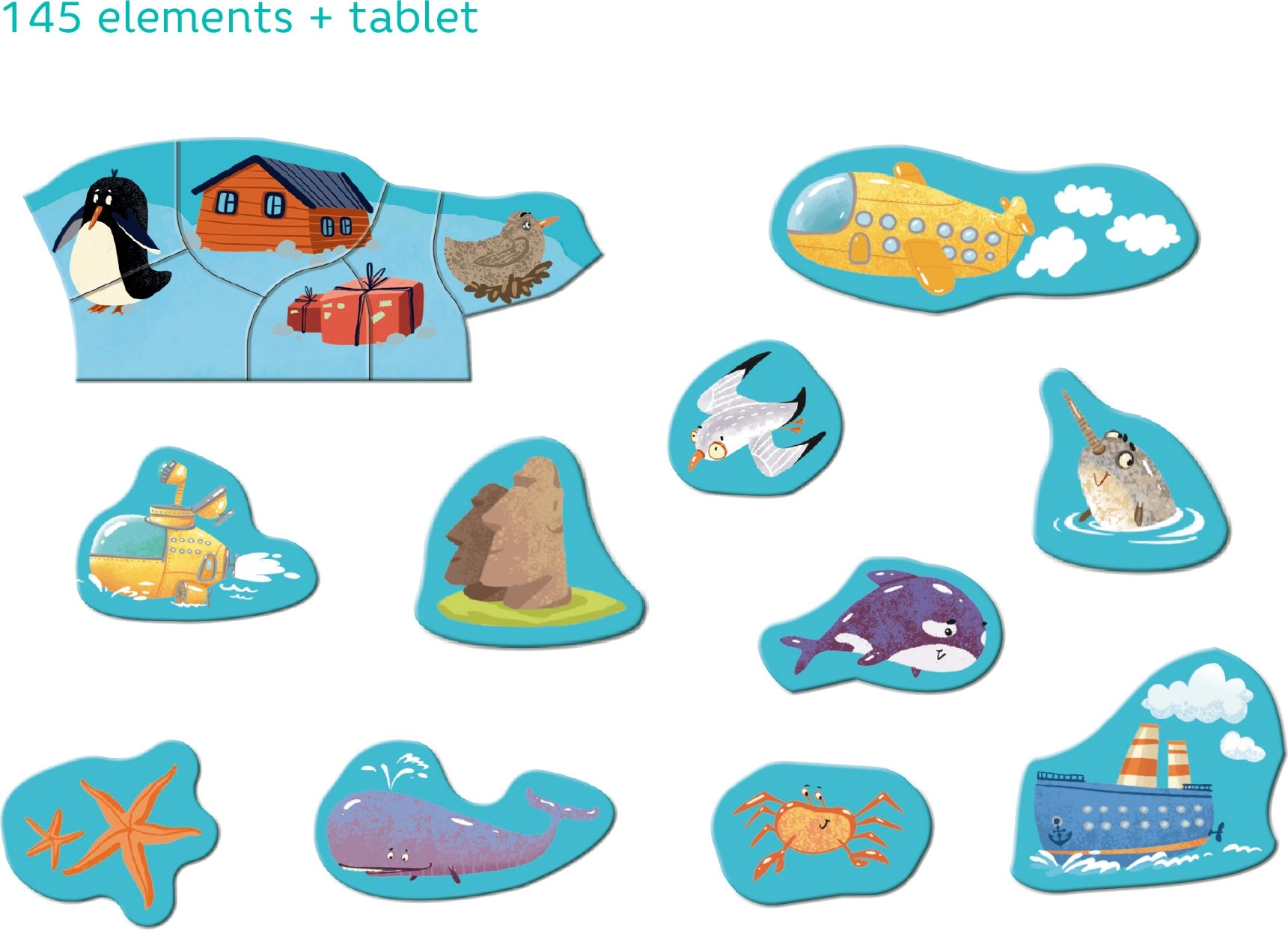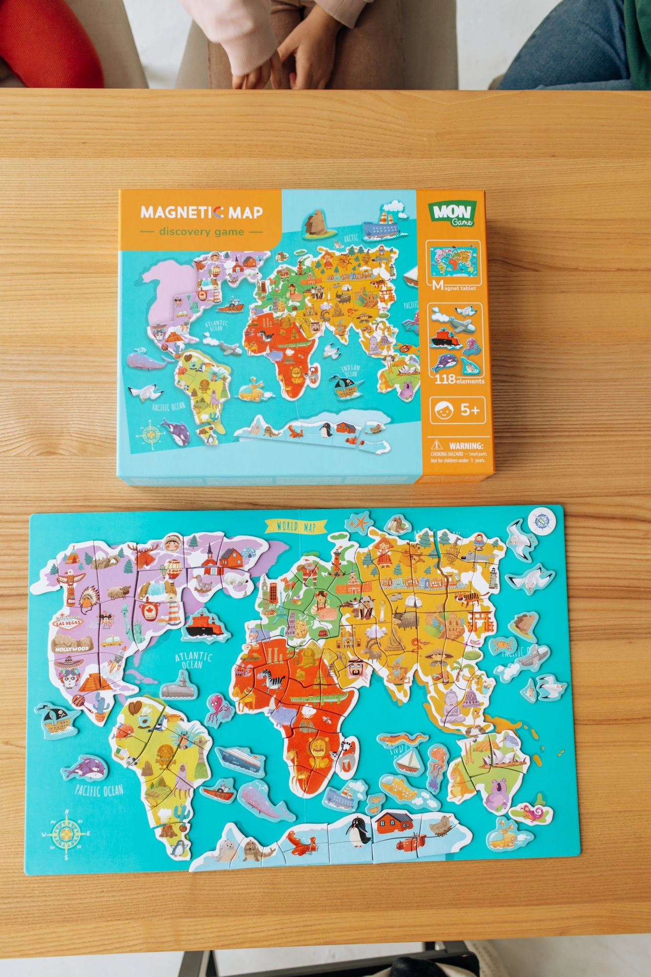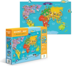 Открийте забавен и образователен начин да запознаете децата със света около нас. Магнитната карта на света съдържа 145 елемента, които лесно се поставят върху магнитната подложка и създават цялостен образ на света.