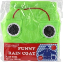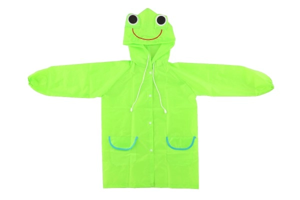 Дъждобранчето има весела жабешка визия с големи очи на качулката, която превръща носенето му в забавление за всяко дете.