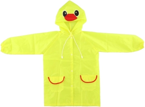Дъждобранчето е с качулка с очи и човка, което превръща всеки дъждовен ден в забавно преживяване.