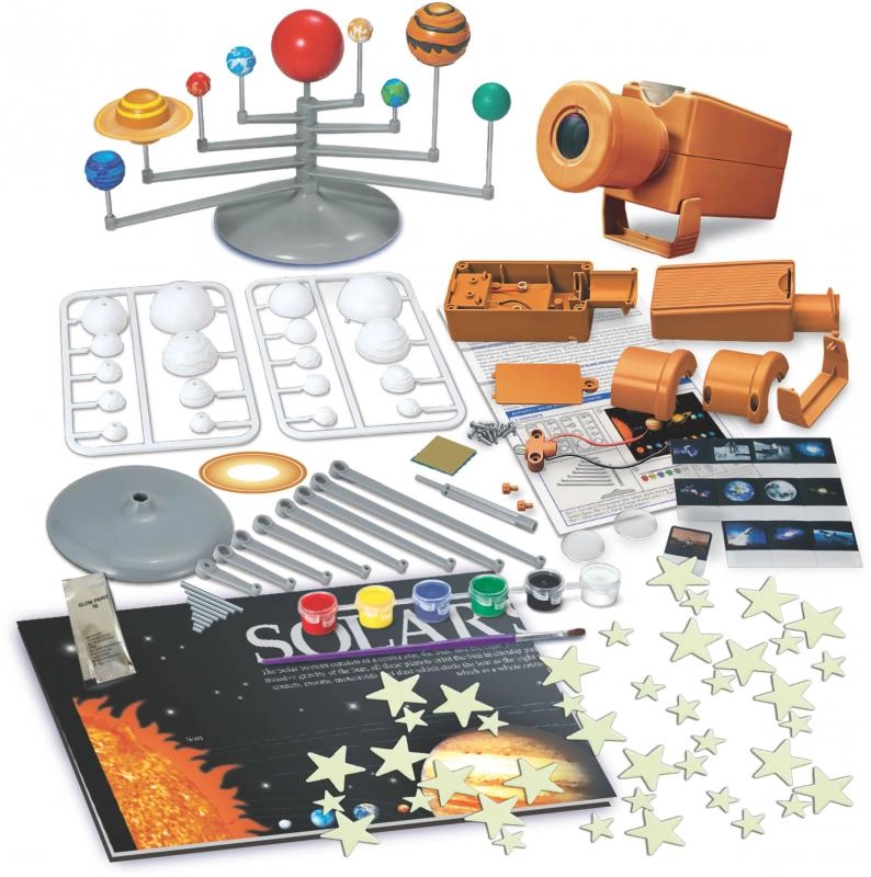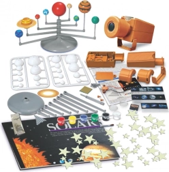 С този образователен комплект децата по забавен начин се запознават с принципите на науката и космическото изследване. Те ще си построят собствен модел на Слънчевата система, ще разберат действие и противодействие при изстрелване на ракета и с помощта на проектор ще надникнат в дълбините на космоса. Част от комплекта са и светещи звезди, които след осветяване нежно сияят и превръщат детската стая в нощно небе.