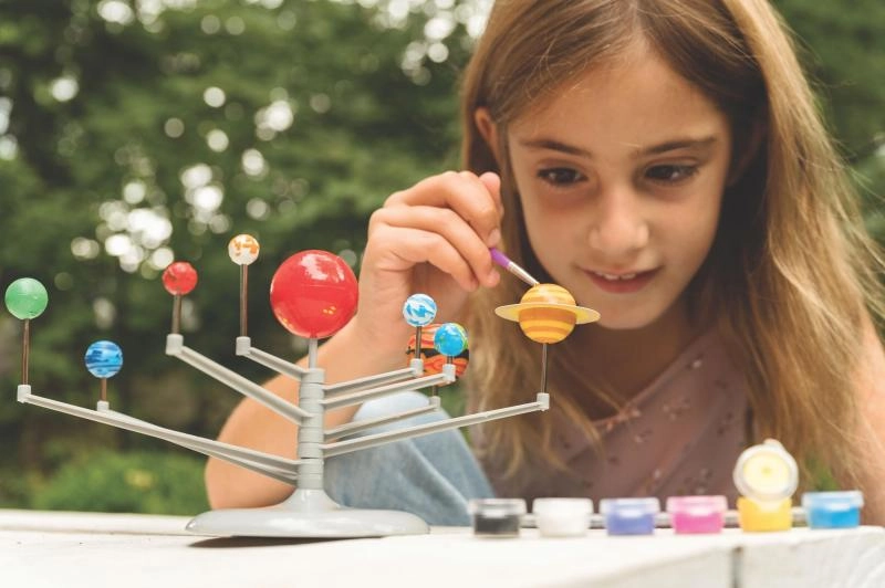 Децата сглобяват модел на планетите и ги доизработват с приложените бои. Забавен начин за разбиране на подредбата и размерите на планетите и основите на астрономията.
