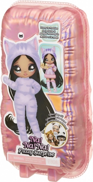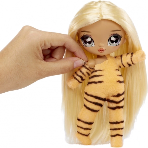 Изживейте напълно нов начин на разопаковане с куклата Na! Na! Na! Fuzzy Surprise Tiger Girl. Благодарение на специалната флокирана повърхност, която нежно изтривате, пред вас постепенно се разкрива кукла с дълга коса, сладко личице и модни аксесоари в тигров стил. Идеален подарък за деца, които обичат изненади, мода и креативна игра.
