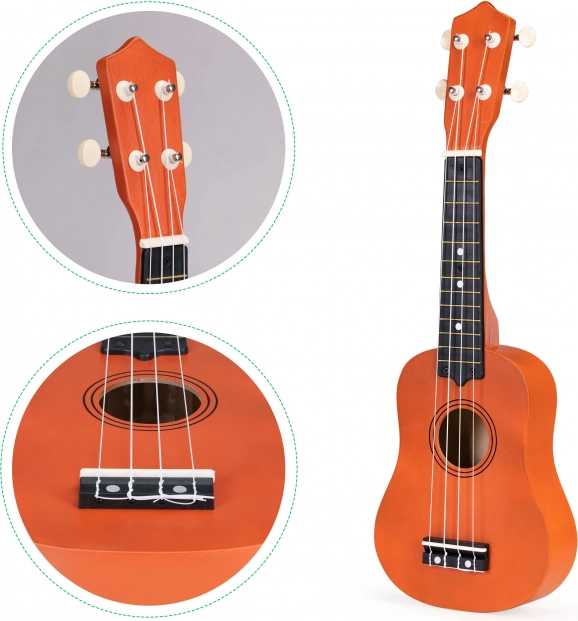 Укулеле ECOTOYS е отличен избор за малки музиканти. Благодарение на компактните размери и леката конструкция се държи лесно от децата, докато найлоновите струни са приятни за пръстите. Инструментът може без усилие да се настрои, така че децата да свирят както прости, така и по-сложни песнички.