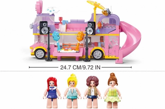 Комплектът съдържа 412 части и 4 минифигурки с подвижни елементи. Благодарение на съвместимостта с LEGO, Cobi и Mega Bloks автобусът лесно може да бъде разширен с нови идеи. Идеален подарък за деца от 6 години, които обичат конструктори, цветове и музикалния свят.