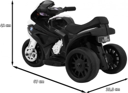 Стилен детски електрически мотор, вдъхновен от BMW S 1000 RR, осигурява безопасно каране на три колела, реалистично LED осветление и звуци на волана. Леката и стабилна конструкция с еко кожа на седалката ще зарадва малките ездачи и родителите.