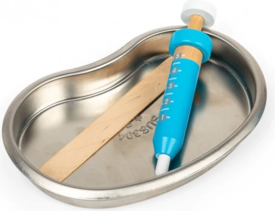 Четка, паста, инжекция, отоскоп, пинсета и маска – всичко за автентична и поучителна игра на зъболекар.