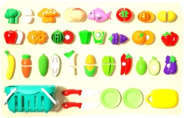 Плодовете, зеленчуците и други храни са разделяеми и сглобяеми, така че децата могат да ги „режат“ и отново да ги събират, тренирайки захвата и координацията.