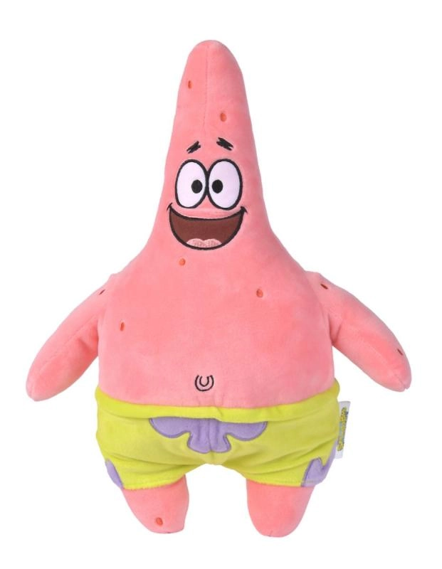 Донесете си доза морско забавление с плюшения Патрик Морска звезда. Този официално лицензиран герой от SPONGEBOB е изработен от мек материал, има безопасни везани очи и усмивка и носи типичните си зелени шорти с лилав десен. Благодарение на компактната височина от 35 см е идеален за всекидневно прегръщане и пътуване.
