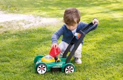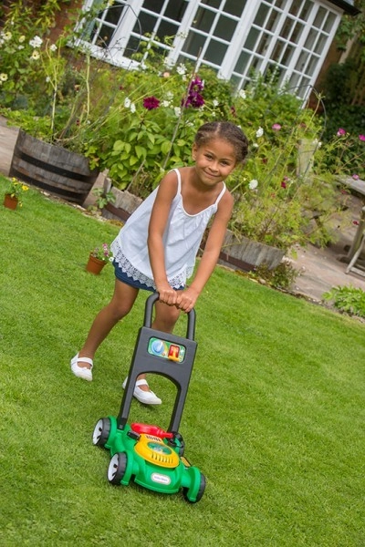 Дръжката приляга на детската ръка, децата се движат лесно с играчката и с радост „косят“ тревата като истински помощници. Веселите цветове, безопасните материали и добре обмислените детайли насърчават дълготрайната и смислена игра.