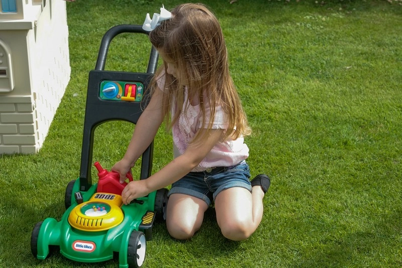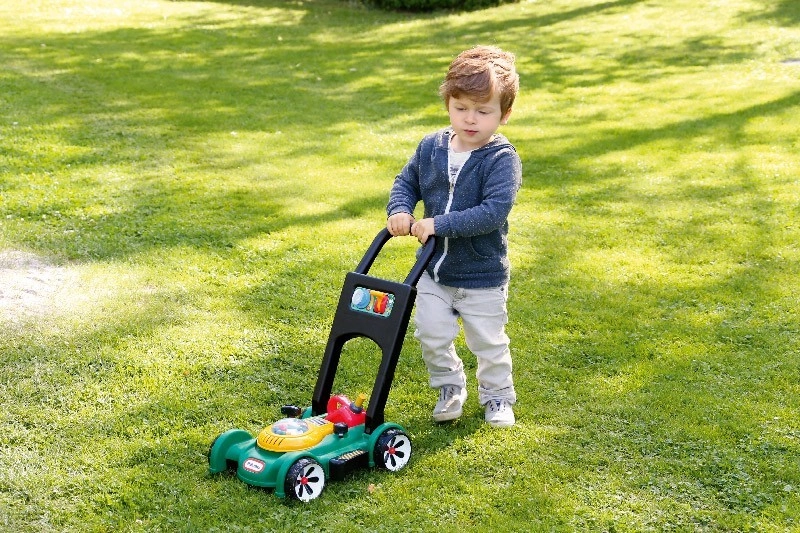 Когато бутат косачката, децата подобряват баланса, координацията и грубата моторика и се учат на самостоятелност.