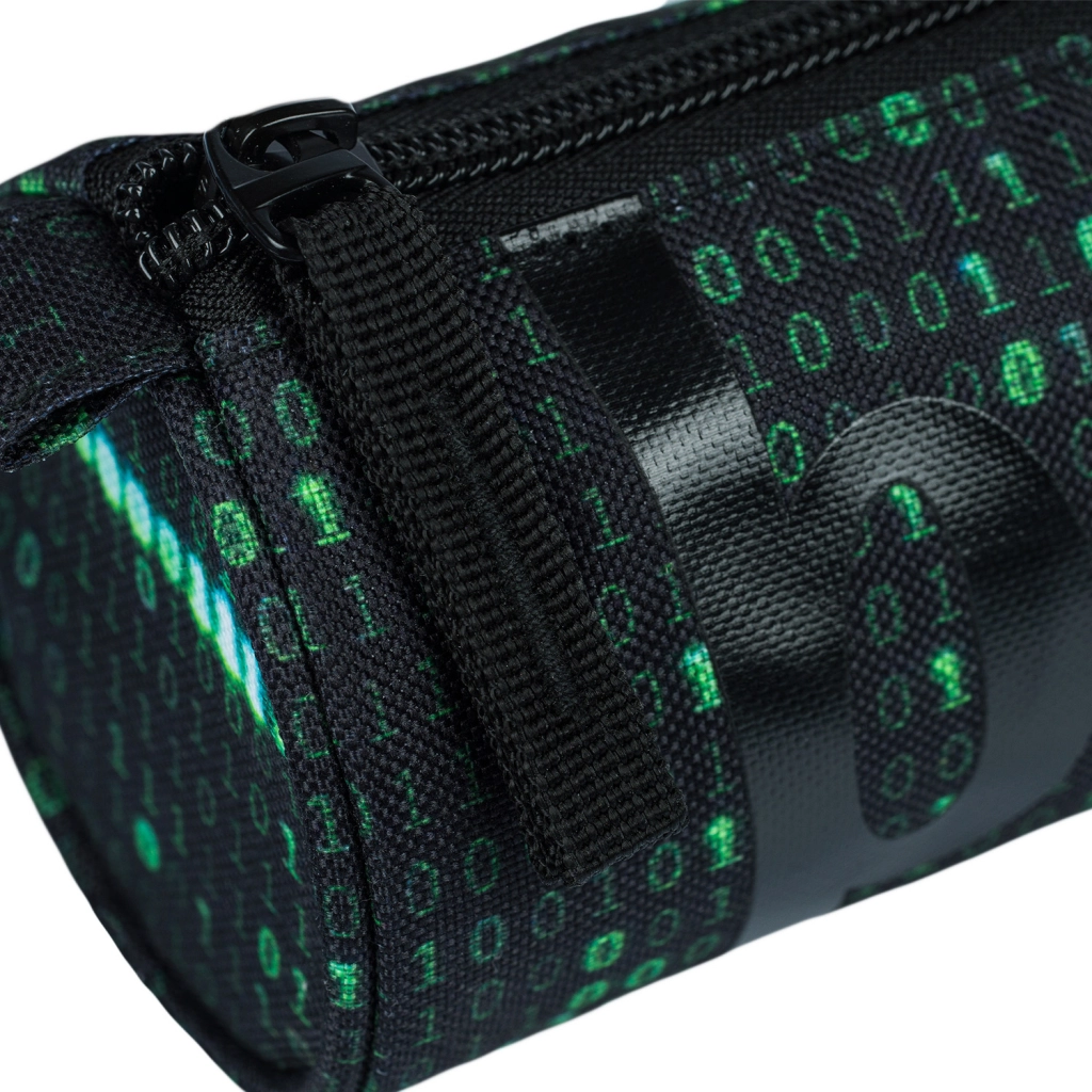 Зелено‑черният мотив с двоичен код придава на учебните ви принадлежности оригинален стил и яснота.