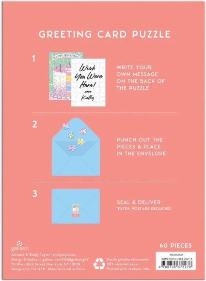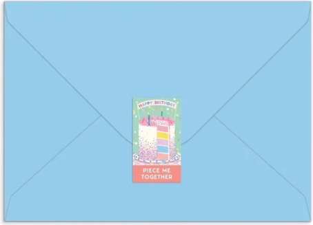Изненадайте близките си с комбинация от картичка и пъзел. Този пъзел във формат пощенска картичка изобразява красива торта; на обратната страна можете да напишете лично послание, да го разделите на части, да го сложите в приложената плик-обвивка и да изпратите като подарък.