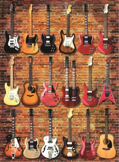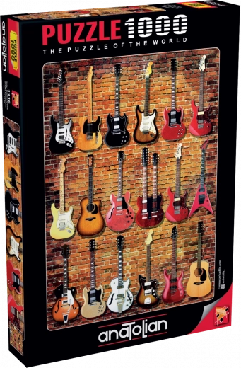 Този стилен пъзел с музикален мотив ще зарадва всеки любител на пъзели и феновете на китарите. Благодарение на практичната стойка можете да използвате капака на кутията като ясен образец, което прави подреждането по-приятно и по-бързо. След подреждане се получава декоративна картина с размери около 48 × 66 cm, идеална за рамкиране.