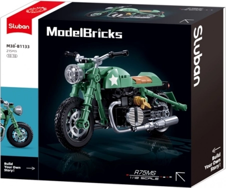 Сглобете емблематичния военен мотоциклет с детайлния модел Sluban ModelBricks R75. Комплектът съдържа 215 части, съвместим е с LEGO и други марки и благодарение на качествената ABS пластмаса издържа на дълги часове игра и изложение. Идеален за възраст 10+ и за всички почитатели на моторите и техническите модели.