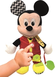Тази мекичка играчка във формата на любимия персонаж MICKEY е създадена да мотивира децата към естествено учене чрез игра. Различните текстури и материали събуждат усещането за допир, докато простите действия като закопчаване на цип или копче развиват координацията око–ръка и търпението.