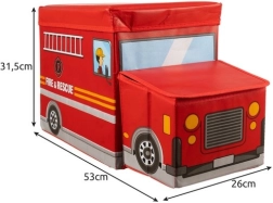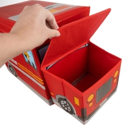 Стилна и практична кутия за играчки във формата на пожарен автомобил превръща прибирането в забавление. Има голям капацитет, сгъваема е, лесна за почистване и благодарение на здрава укрепваща конструкция запазва форма дори празна. Идеална за детската стая за момчета и момичета.