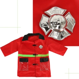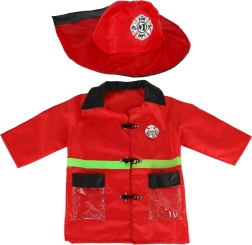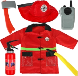С този пожарникарски комплект децата могат да играят на спасяване на хора и имущество. Костюмът включва червено яке с отражателни елементи, пожарникарска шапка, уоки-токи, пожарогасител, малка брадвичка и други аксесоари.