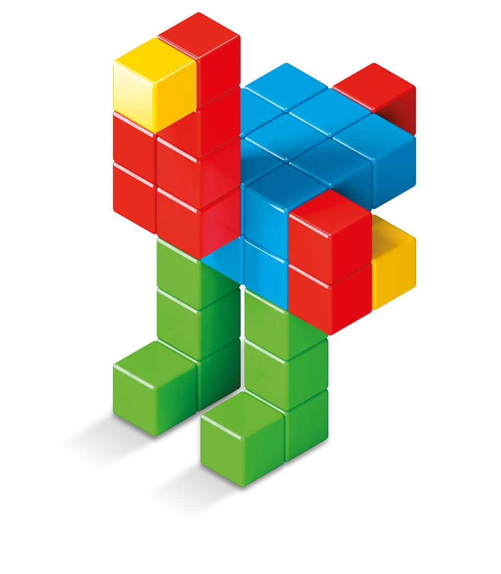 С GEOMAG MAGICUBE децата лесно строят кули, форми и прости модели. Благодарение на магнитите от всички страни кубчетата държат стабилно, а строенето е интуитивно и забавно. Четирите ярки цвята подпомагат разпознаването на цветове и развиват фината моторика, координацията око–ръка и пространственото въображение.