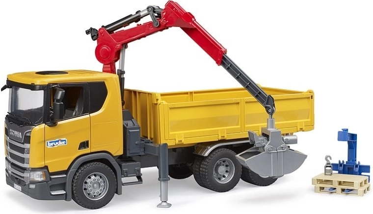 Открийте детайлно изработеното строително превозно средство BRUDER Scania, което съчетава устойчива конструкция с богато оборудване за реалистична игра. Телескопичната кранова стрела с въртене на 360° се справя с товарене и разтоварване, докато стабилизиращите крака осигуряват безопасна работа на терен. Отварящите се врати и сгъваемите огледала придават на кабината автентичен вид.