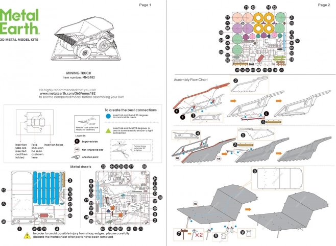 Този комплект от стоманени пластини ще превърне сръчните ви ръце в работилницата на моделист. От пластини 11 × 11 cm постепенно оформяте и свързвате отделните части в впечатляваща реплика на минен самосвал с множество реалистични детайли – от стъпала и парапети до масивни колела и каросерия.