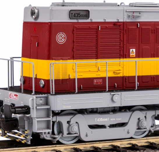 Открийте висококачествения модел на четириосната дизел-електрическа локомотива T 435 „Hektor“ в изпълнение на ČSD, епоха IV. Благодарение на първокласното боядисване, финия печат и реалистичния интериор на кабината моделът изглежда изключително достоверно. Различни ходови части, отговарящи на по-стари и по-нови серии, детайлна спирачна система и богати допълнения (парапети, покривно окабеляване, охлаждане) подчертават автентичния вид.