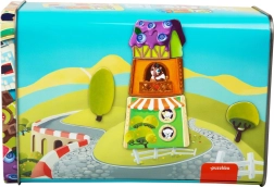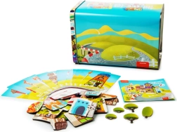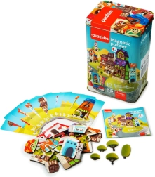 Комплектът включва 10 хартиени шаблона, по които могат да се построят къщичките. Магнитните елементи от твърд картон с лъскава повърхност лесно се почистват с влажна кърпа. Изработено от екологична дървесина и предназначено за деца от 3 години. Произведено в Европа.