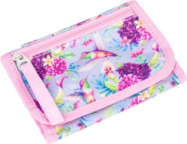 Портмонето се отличава с красив десен на цветя и колибри, който привлича вниманието и добавя стил към всеки аутфит.