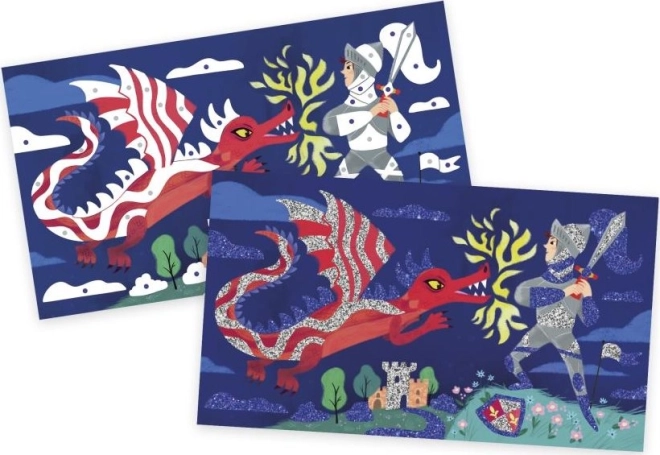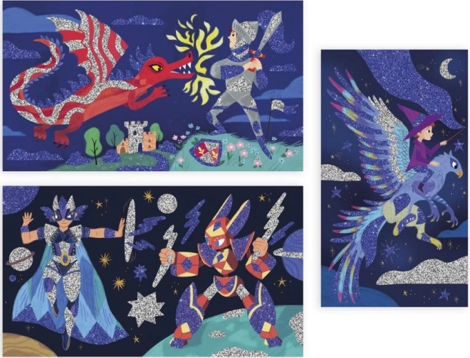 Janod представя забавна и образователна дейност за деца от 6 години. Комплектът съдържа три цветни картинки, които децата могат да украсяват с два различни цвята пясък и брокат. С помощта на шпатула лесно се отстраняват лепкавите части и се разпределят красивите брокати върху картинките. Завършването на една забавна картинка отнема само 30 минути.