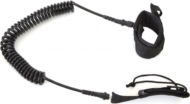 Спираловидното предпазно въже за падълборд е специално проектирано за безопасност и комфорт. Предотвратява отдалечаването на дъската при внезапно падане във водата.