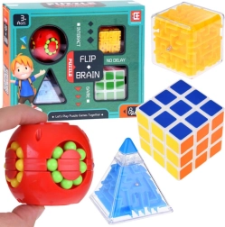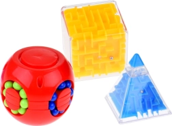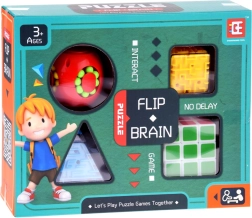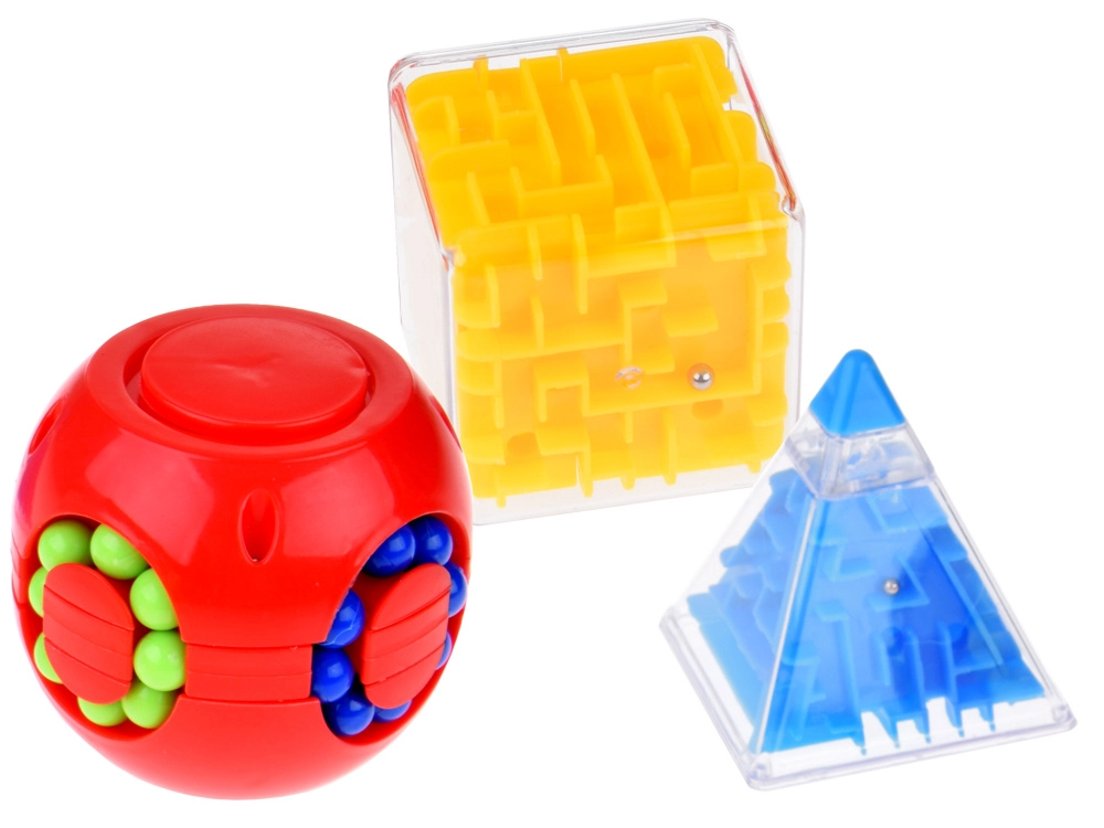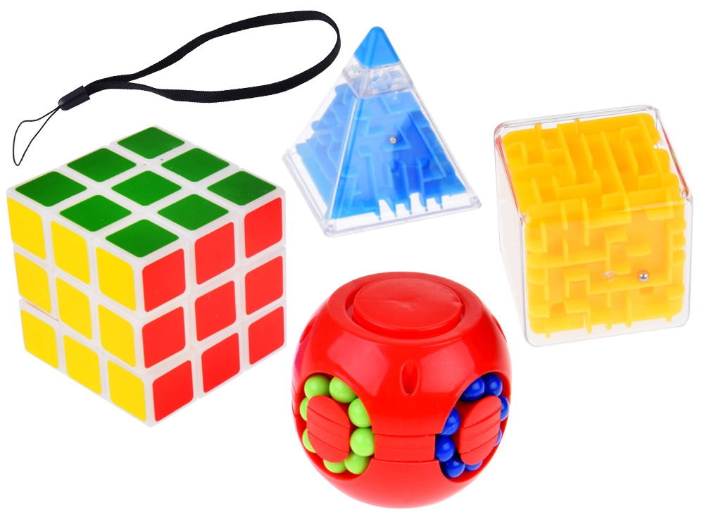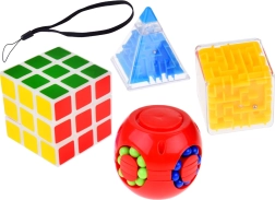 Комплектът съдържа четири уникални играчки, които подобряват концентрацията и фината моторика на ръцете. Идеален за релаксация и трениране на логическото мислене.