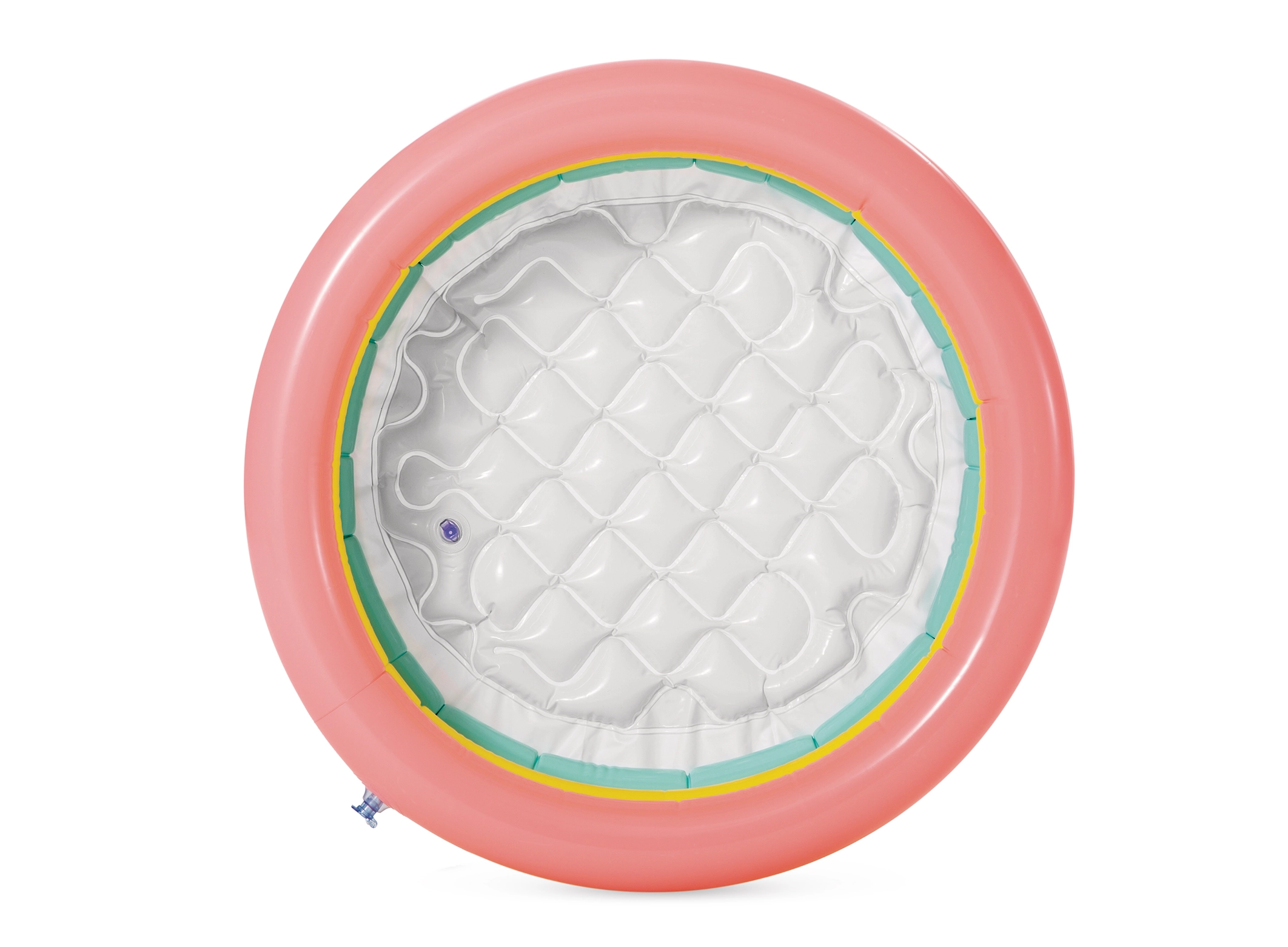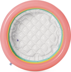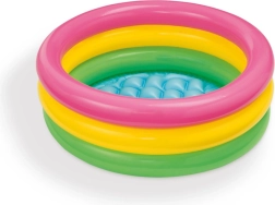 Подарете на децата си забавление на слънце с този надуваем басейн, който е идеален за външни водни игри. Басейнът е изработен от устойчив винил и е оборудван с три пръстена в весели цветове. С мекото надуваемо дъно е удобен и безопасен за децата, които ще обикнат плискането във водата.