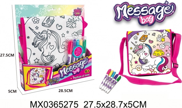 Създай си оригинален аксесоар точно по твой вкус! Тази чанта за оцветяване ти позволява да проектираш собствен дизайн с помощта на текстилни маркери. Преди самото декориране можеш да изпробваш цветовете върху друго платно и по време на работа лесно да избърсваш излишното мастило в кърпичка за чист и прецизен резултат.