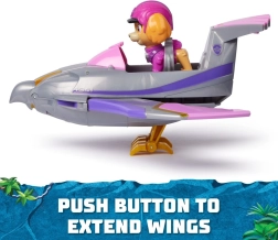 Вдъхновеното от сокол превозно средство на Скай носи на децата автентични игрови преживявания от серията Пес Патрул: Джунгла. С лесно натискане на предната част активирате трансформацията – крилата се разгъват, човката се отваря, а ноктите се завъртат за стабилна стойка по време на спасителна акция.