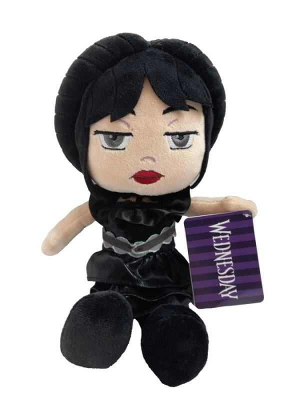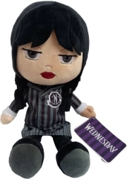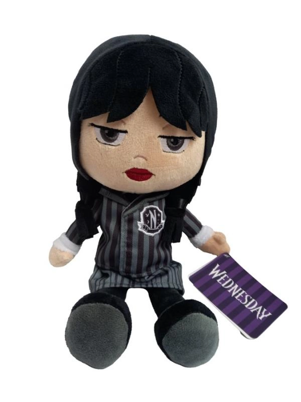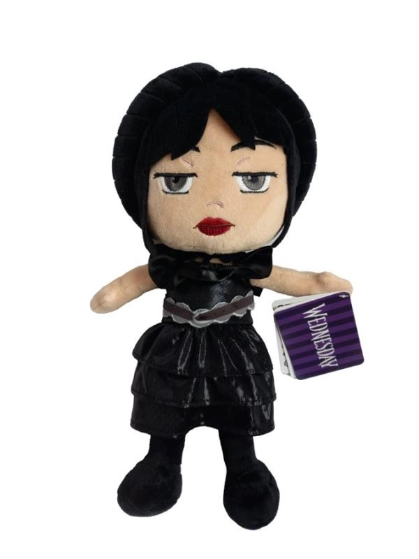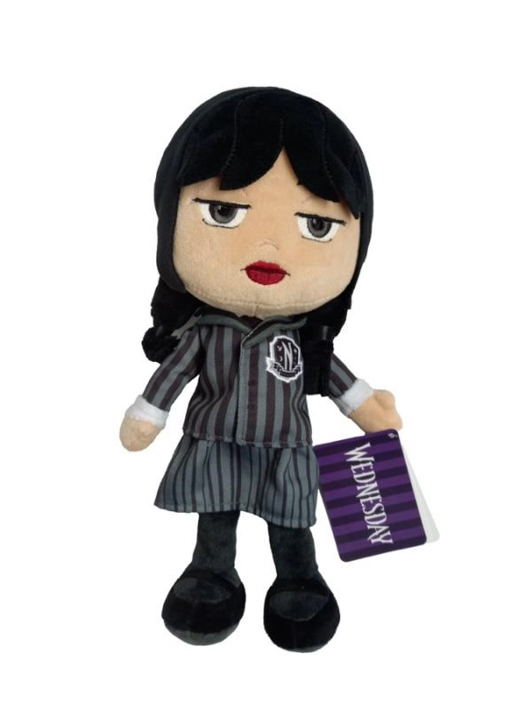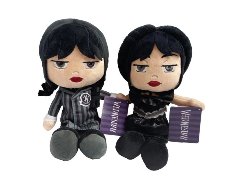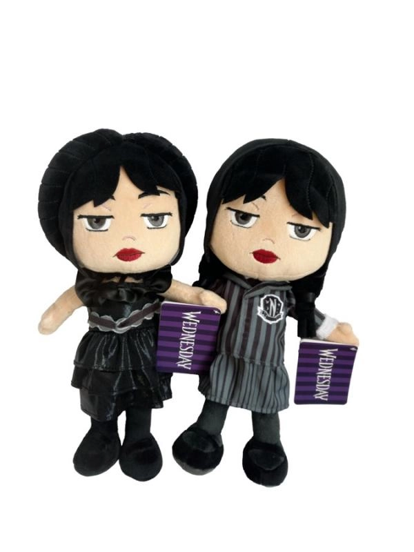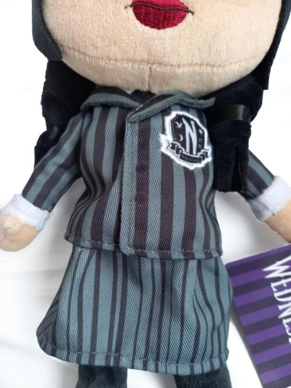 Открийте чара на обичания сериен герой с нашата стилна плюшена кукла Уензди Адамс. Тази 32-сантиметрова кукла е прецизно изработена в два емблематични тоалета: сивата училищна униформа на Nevermore и екстравагантната черна рокля, която носеше на Nevermore Rave'N Dance.