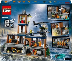 Открийте вълнуващия свят на LEGO CITY с островния затвор, пълен с действие. Този детайлен сет предлага наблюдателна кула, килии с трикове за бягство, хеликоптерна площадка, полицейска лодка и хеликоптер, както и фигурки на полицаи и затворници за безкрайни истории с преследвания и бягства.
