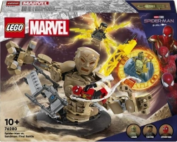LEGO Marvel Spider-Man включва трима злодеи: Пясъчния човек, Електро и Гущера, който за пръв път е част от комплект на LEGO Marvel. Предлага множество места за поставяне на минифигурки, което разширява възможностите за игра и експониране. Децата могат да въртят и манипулират Пясъчния човек, който се опитва да хване Спайдър-Мен с огромните си ръце, докато Спайдър-Мен се люлее над главата му на еластично „паяжинено“ въженце. Моделът може да се комбинира с комплекта Окончателното сблъсък на Спайдър-Мен, продаван отделно, за още повече забавление.