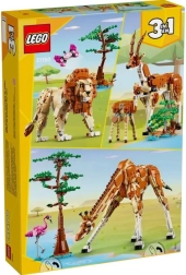 LEGO Creator 3 в 1 Диви животни от сафари въвежда децата в пъстрия свят на африканската природа. От един набор елементи ще построят величествен жираф с дълга шия и подвижни стави, допълнен от фламинго и дърво. След това могат лесно да преработят модела в две антилопи (майка и малко) или в впечатляващ лъв – всеки път с допълнителни елементи за разиграване на истории.