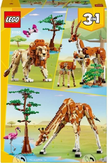 LEGO Creator 3 в 1 сафари животни носи страхотна доза забавление и креативност. От една кутия построявате горд жираф с дълга, позиционираща се шия, малко дърво и очарователен фламинго. Когато е време за промяна, престройте модела в две елегантни газели – майка с малко – или в благороден лъв с придружаващи елементи.