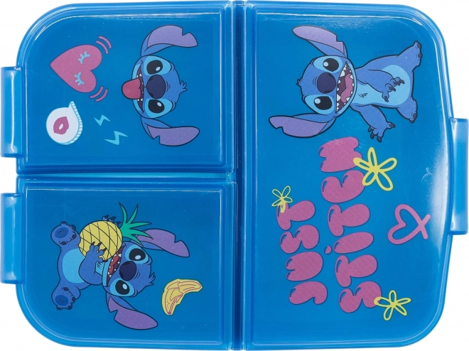 Стилна и функционална кутия за закуска STOR с мотив STITCH, идеална за ежедневна употреба. Трите практични отделения държат плодовете, сандвича и дребните вкусотийки разделени, така че да останат по-дълго свежи и несмесени. Издръжливата пластмаса понася обичайни падания и удари, а надеждното затваряне държи съдържанието на място.