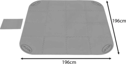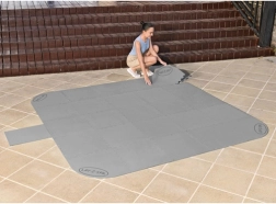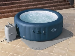 В комплекта има и самостоятелна подложка за помпа, която осигурява стабилно и безопасно поставяне на отоплителното/филтриращото устройство. Ако вашата хидромасажна вана е по-голяма от 196 × 196 cm, просто съединете повече комплекти, за да получите необходимата защитна площ.