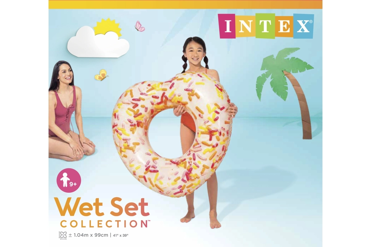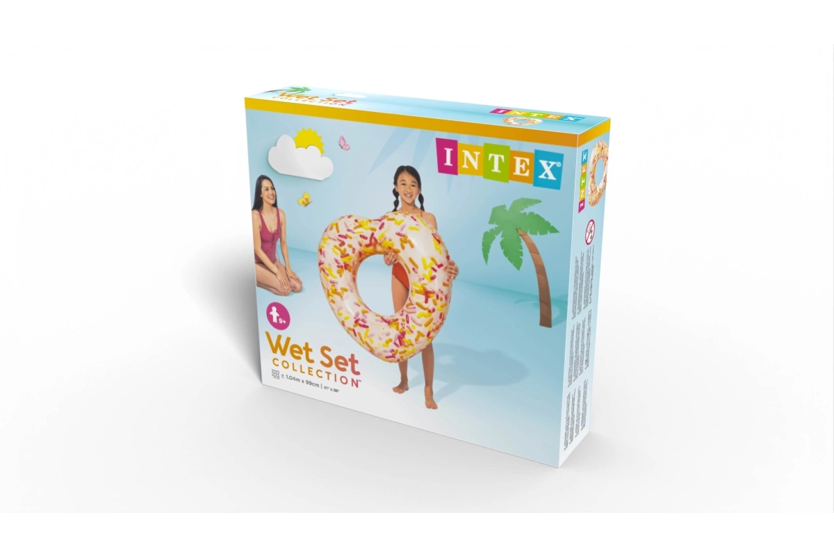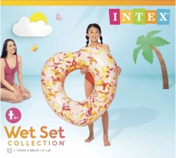 Този оригинален надуваем пояскa във форма на сърце ще зарадва всички любители на водата. Реалистичният принт на донът с посипки придава игрива атмосфера на вашето къпане, а здравият и издръжлив материал осигурява безопасно и удобно лежане върху водната повърхност.