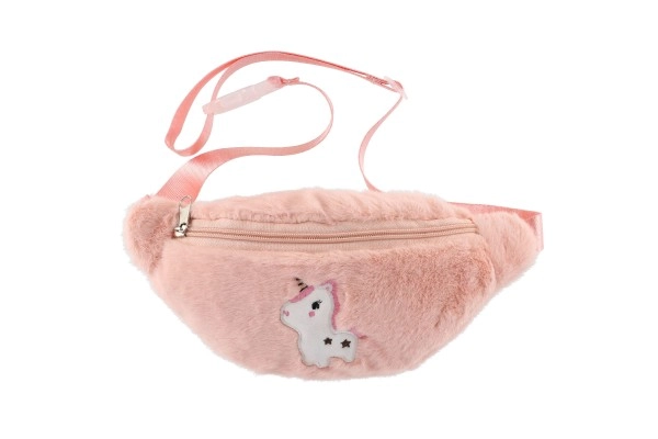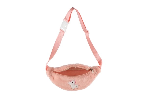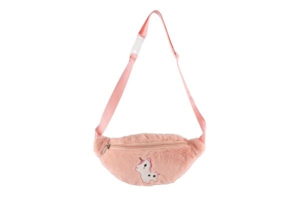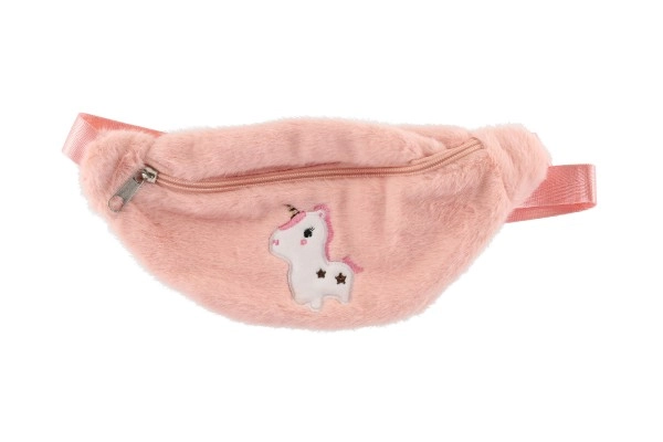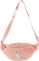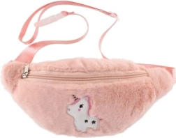 Очарователна детска плюшена чантичка тип бъбрек с еднорог, идеална за всички малки вещи, които искате да са под ръка. Разполага с регулируем колан за кръста и основно отделение с цип.