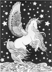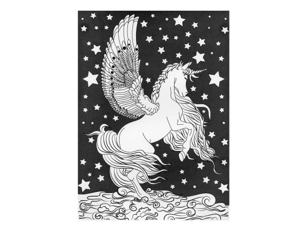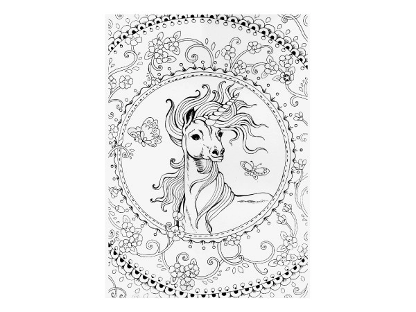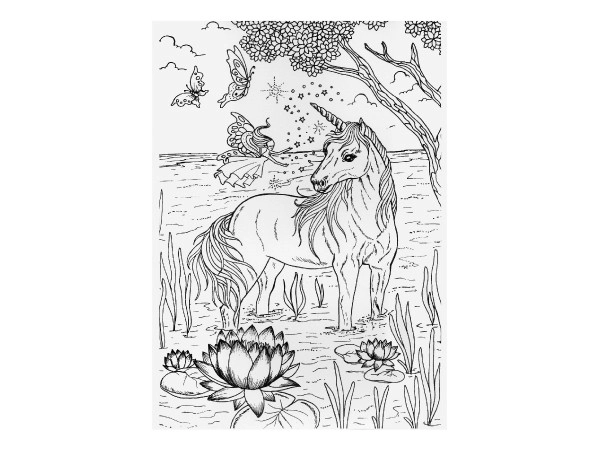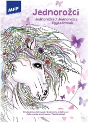 Книжката включва мотиви с еднорози в магични среди, допълнени с детайли като цветя и пеперуди, които ще съживят въображението ви.