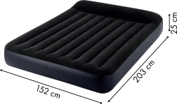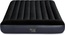 Двуслоен надуваем дюшек INTEX с размери 203 × 152 × 25 см предлага удобно спане за 2 души у дома и по време на пътуване. Изработен е от издръжливо PVC, повърхността е приятен водоустойчив велур, а благодарение на вградената електрическа помпа го надувате за приблизително 250 секунди. Стабилната конструкция с технология Dura-Beam Fiber осигурява отлична опора за гръбначния стълб, докато интегрираната възглавница добавя допълнителен комфорт. Практичният вентил позволява бързо изпускане и лесно съхранение.