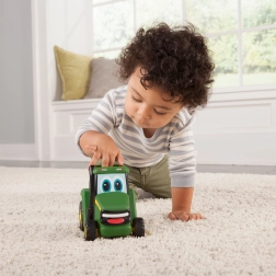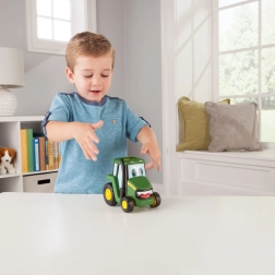 Тракторът Джони от JOHN DEERE ще зарадва малките почитатели на селскостопанските машини. Интуитивният механизъм за навиване чрез натискане на покрива развива моториката и осигурява много забавление без нужда от батерии. Благодарение на компактните си размери е идеален за у дома и за път.