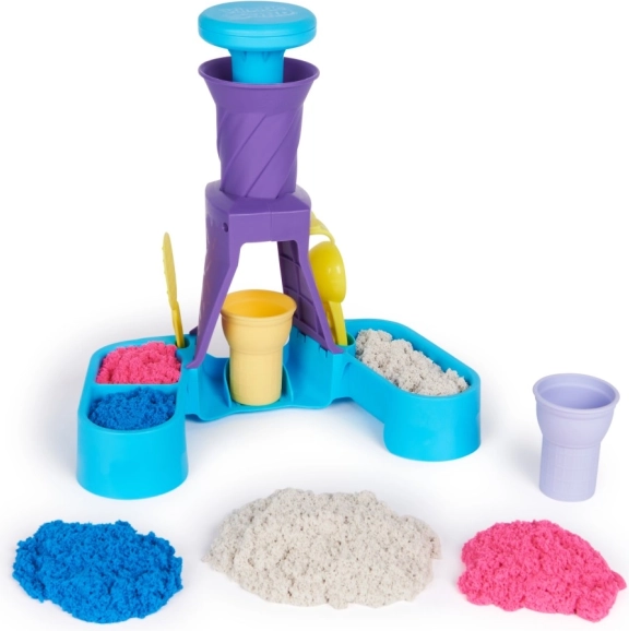 Децата могат да създават, декорират и сервират своите сладоледени творения с различни цветове кинетичен пясък.