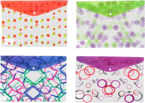 Практична папка с копче с размери 35x25 см, идеална за организиране и съхранение на документи и листове. Предлага се в четири различни мотива.