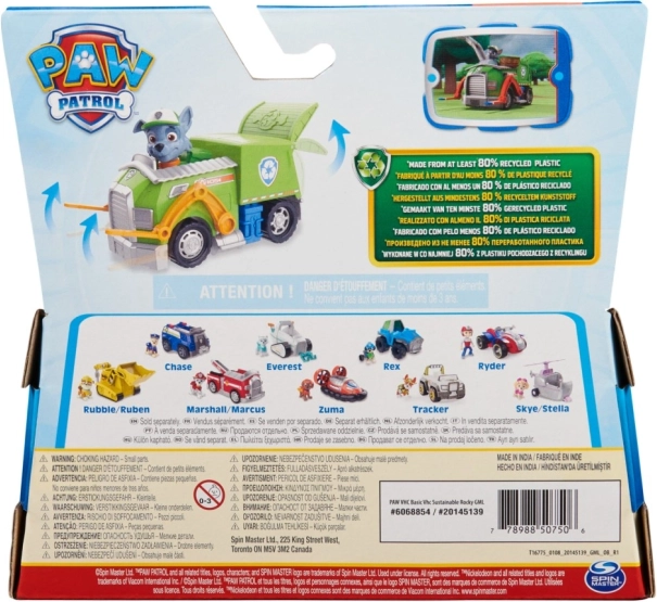 Камионът е изработен минимум 80% от рециклирана пластмаса, има отворящ се заден капак и подвижни вилици за товарене. Децата могат да поставят фигурката на Роки в кабината и лесно да се движат благодарение на свободно въртящите се колела. Идеален подарък за деца от 3 години, които обичат PAW Patrol.